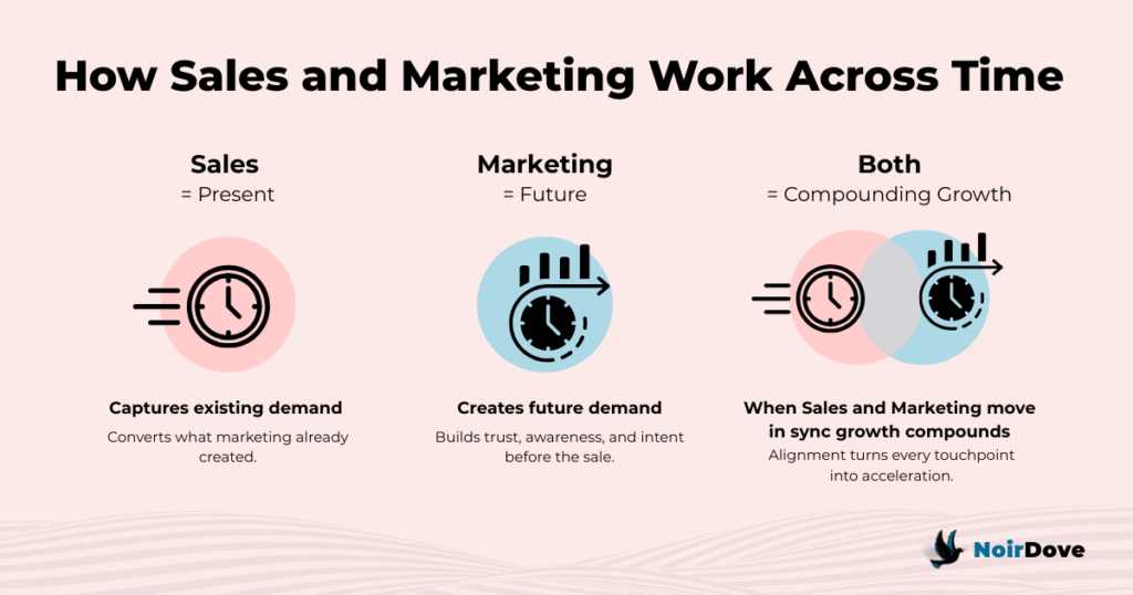So marketing doesn’t feel strategic, sales feels overwhelmed, and everyone’s running after numbers rather than alignment.